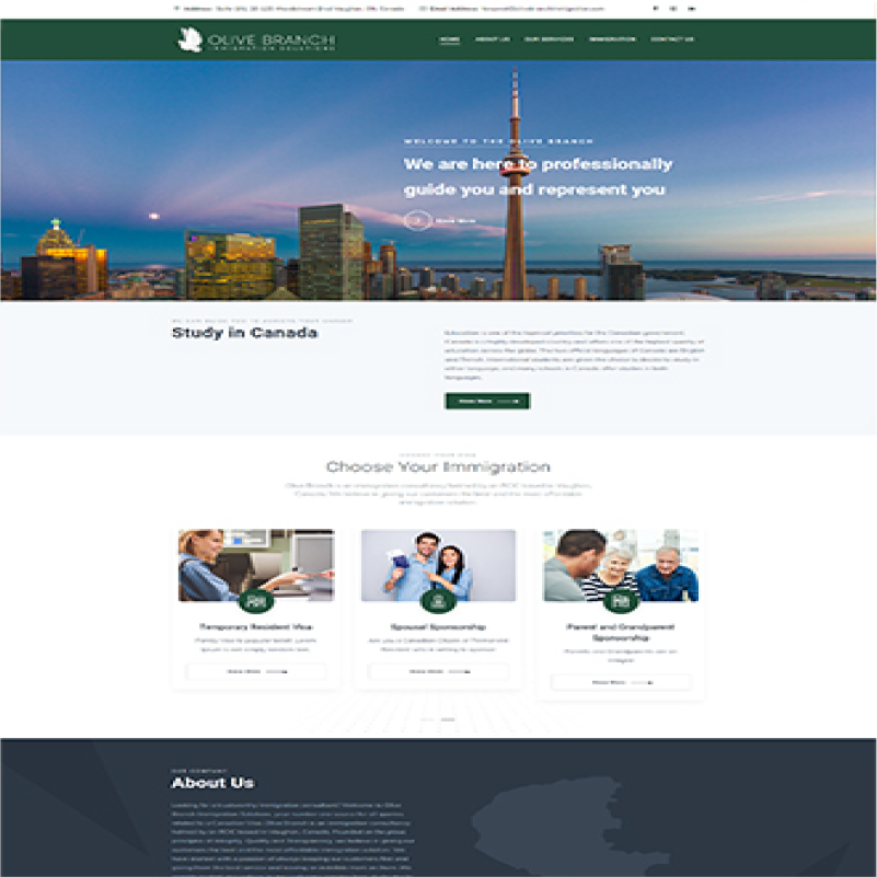 Clients: Olive Branch Project Type: Website Growth Date: 25 August, 2023 Address: New York United state Olive Branch Looking for a trustworthy immigration consultant? Welcome to Olive Branch Immigration Solutions, your number one source for all queries related to a Canadian Visa .Olive Branch is an